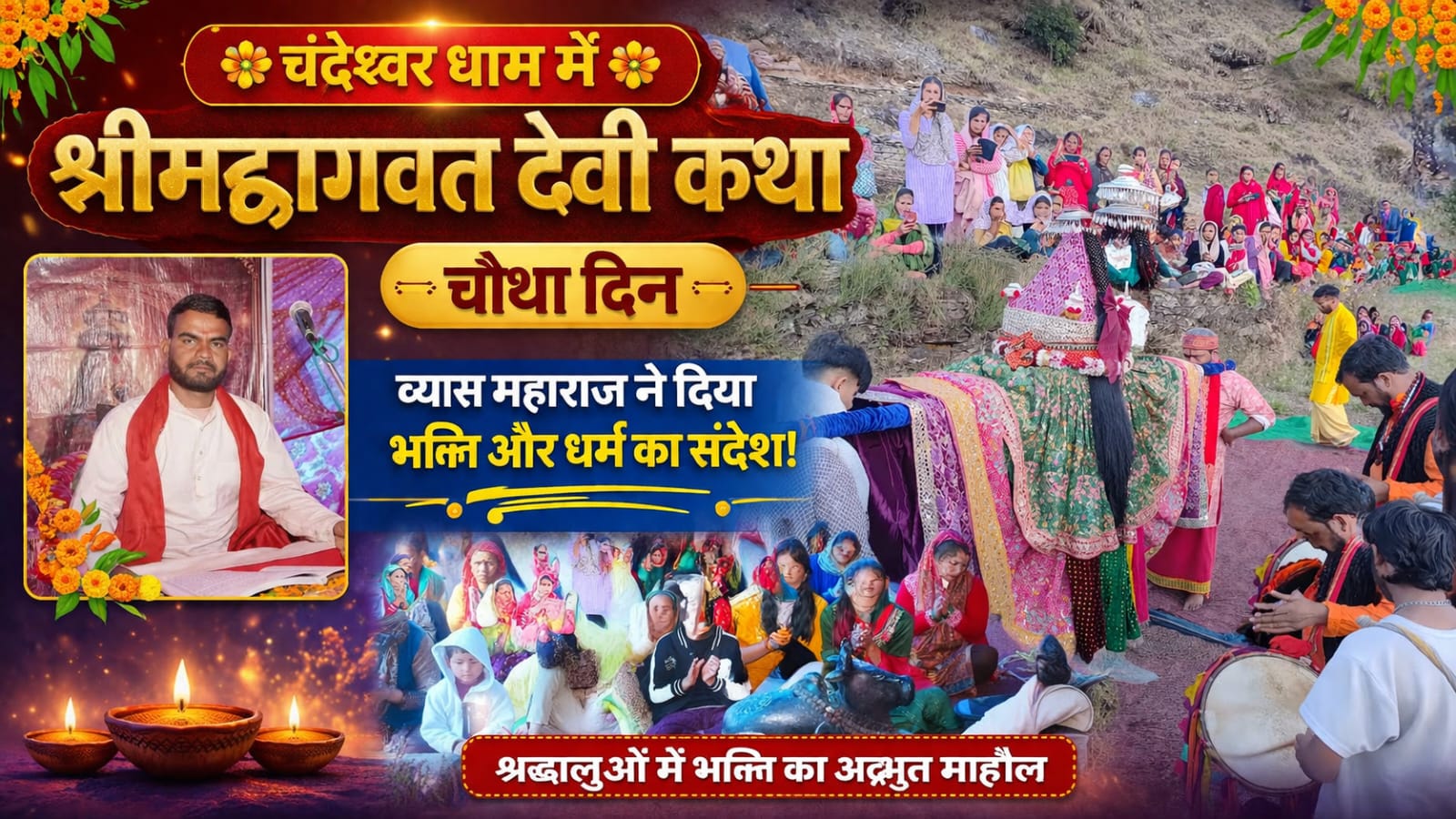 चंद्रेश्वर धाम में श्रीमद्भागवत देवी कथा का चौथा दिन, व्यास महाराज ने भक्ति और धर्म के मार्ग पर चलने का दिया संदेश।