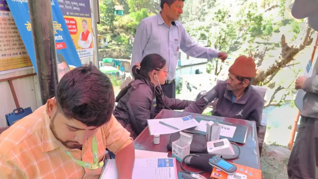 पोखरी चमोली स्वास्थ्य कैंप में लैब टेक्नीशियन सचिन पांडे और फार्मेसिस्ट अमित रावत ने जांच और दवाइयों के वितरण में महत्वपूर्ण भूमिका निभाई।